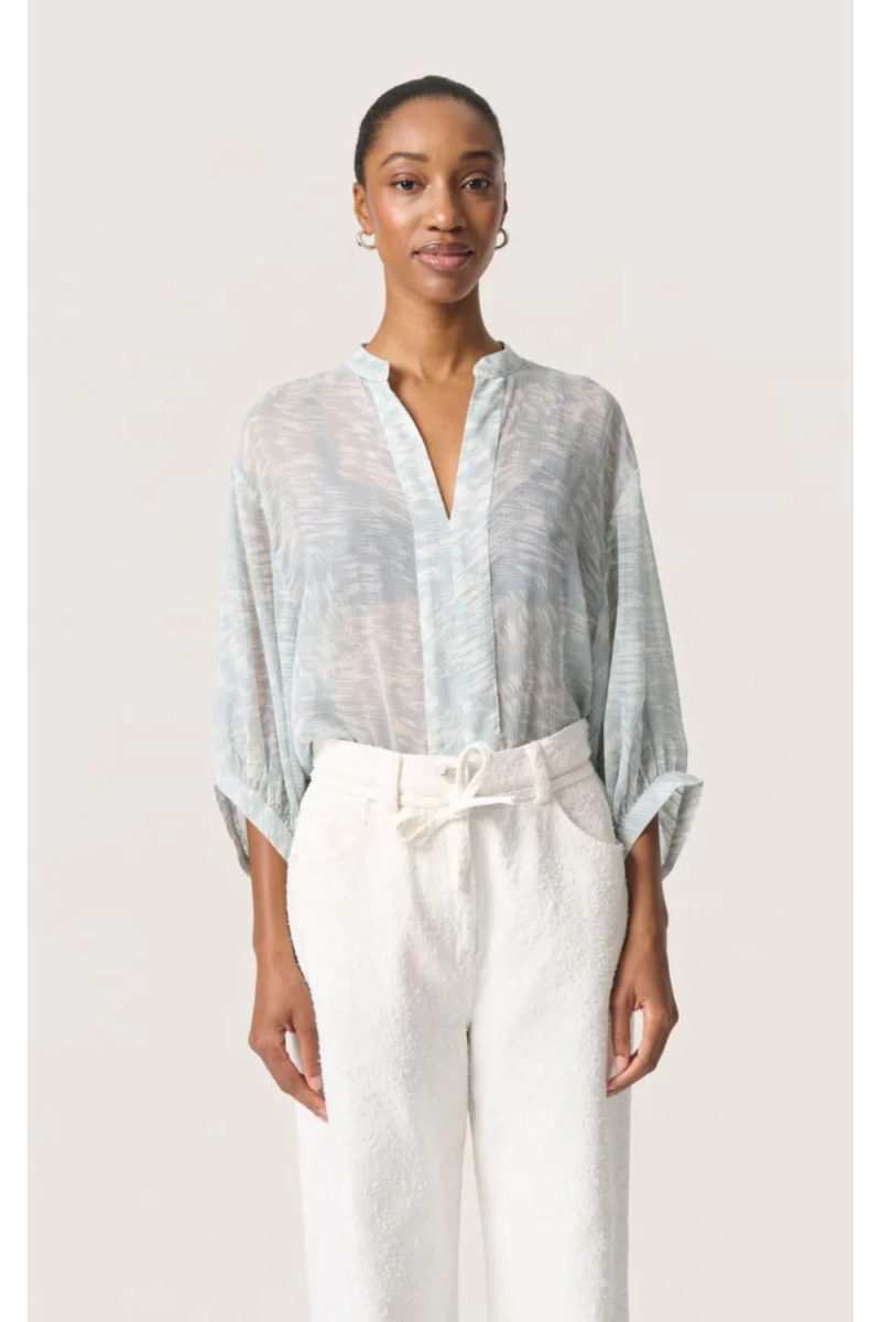 Blusa ligera y vaporosa de SOAKED con un estampado suave y un elegante escote en V. Sus mangas holgadas y corte holgado la convierten en la prenda perfecta para tu armario de verano. La modelo mide 176 cm y lleva la talla M.