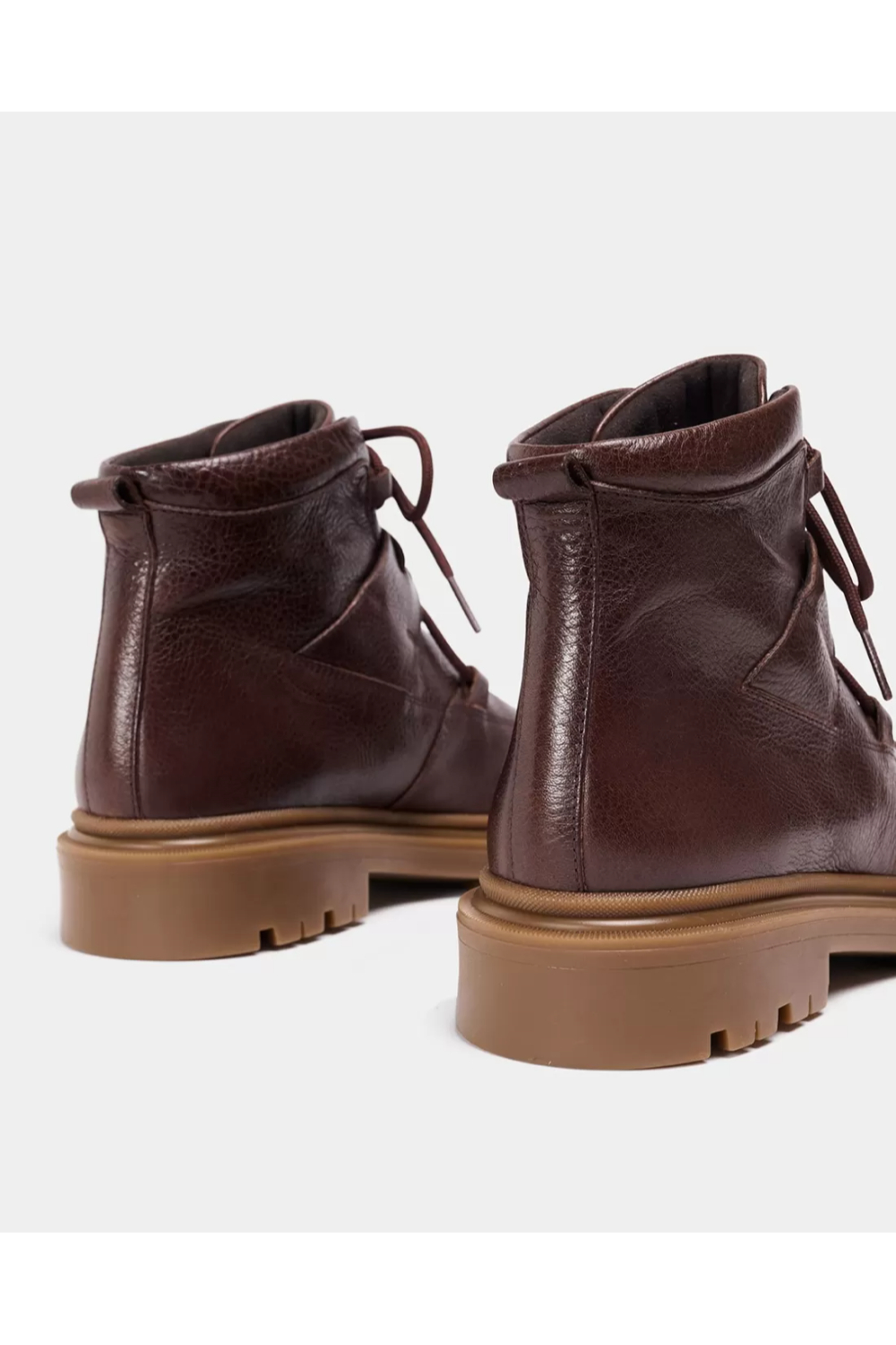 El modelo ZEA de NAGUISA es una bota con detalle de piel pasada en la punta. El corte es de piel vacuno. Cierre mediante cordones a tono. Forro de tejido. Puntera redonda. Suela gruesa tipo track. La altura del piso es de 3 cm para mayor comodidad de tu espalda.
