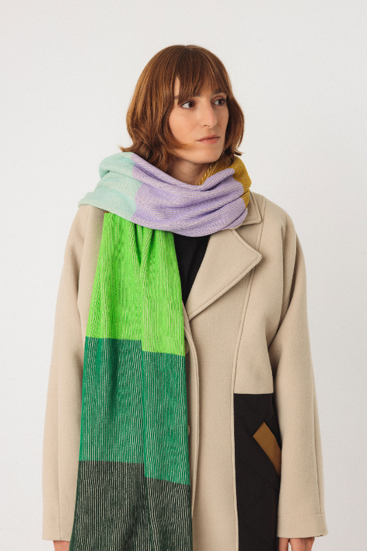 Bufanda rectangular de punto premium hecha con alpaca reciclada mezclada, de tacto mullido y suave. Hecha en Portugal. Mide 180 x 55 cm.
