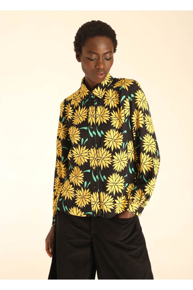 Camisa de la firma PEPALOVES de corte amplio con estampado de dalias amarillas.