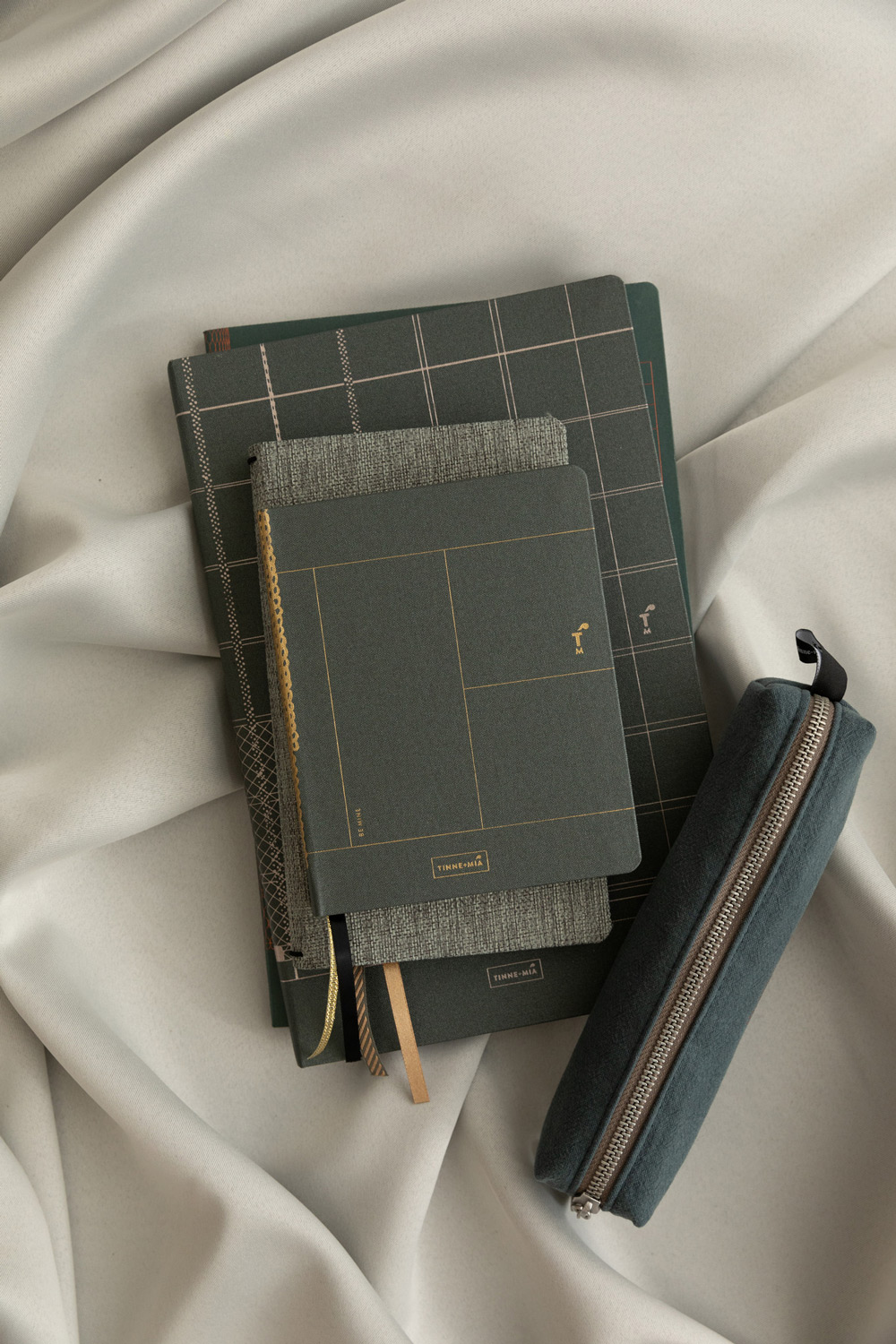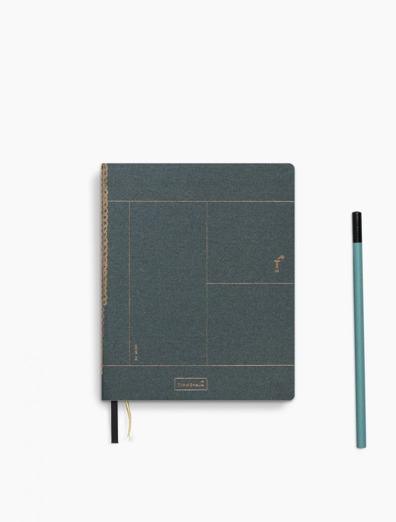 Un cuaderno fino de Tinne+Mia, forrado con lino de libro verde oscuro. Tiene detalles dorados en la parte delantera y dos cintas de lectura. La cita «Be mine» aparece sutilmente en el anverso. Da la sensación de estar hecho a mano con la artesanía de antaño. El interior está impreso en papel Japanse FSC. Y tiene líneas en la parte derecha y puntos en la izquierda con una pieza en blanco, para que puedas escribir y hacer bocetos en un solo libro. En la parte trasera encontrarás un práctico compartimento para guardar todas las cositas y notas sueltas que quieras.