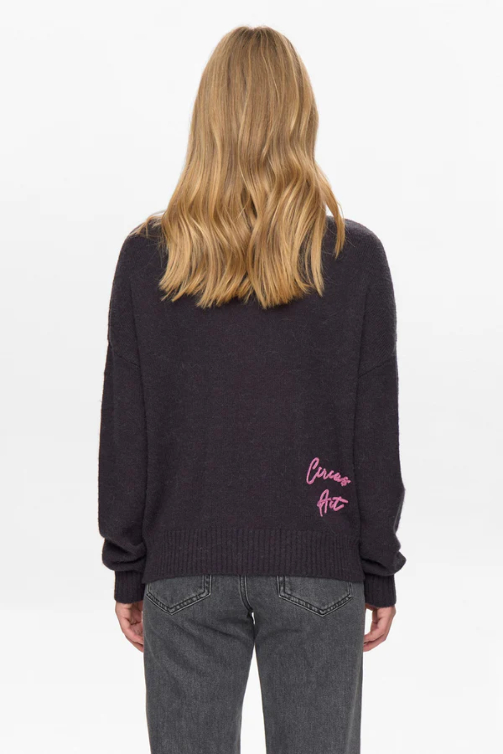 Jersey de la firma danesa Nümph con un diseño original y lleno de detalles. Confeccionado en un suave tejido de mezcla con tacto agradable, presenta bordados coloridos inspirados en motivos celestiales y figuras decorativas que aportan un aire artístico y divertido. Incluye cuello de pico, manga larga y acabados acanalados en el cuello, los puños y el bajo.