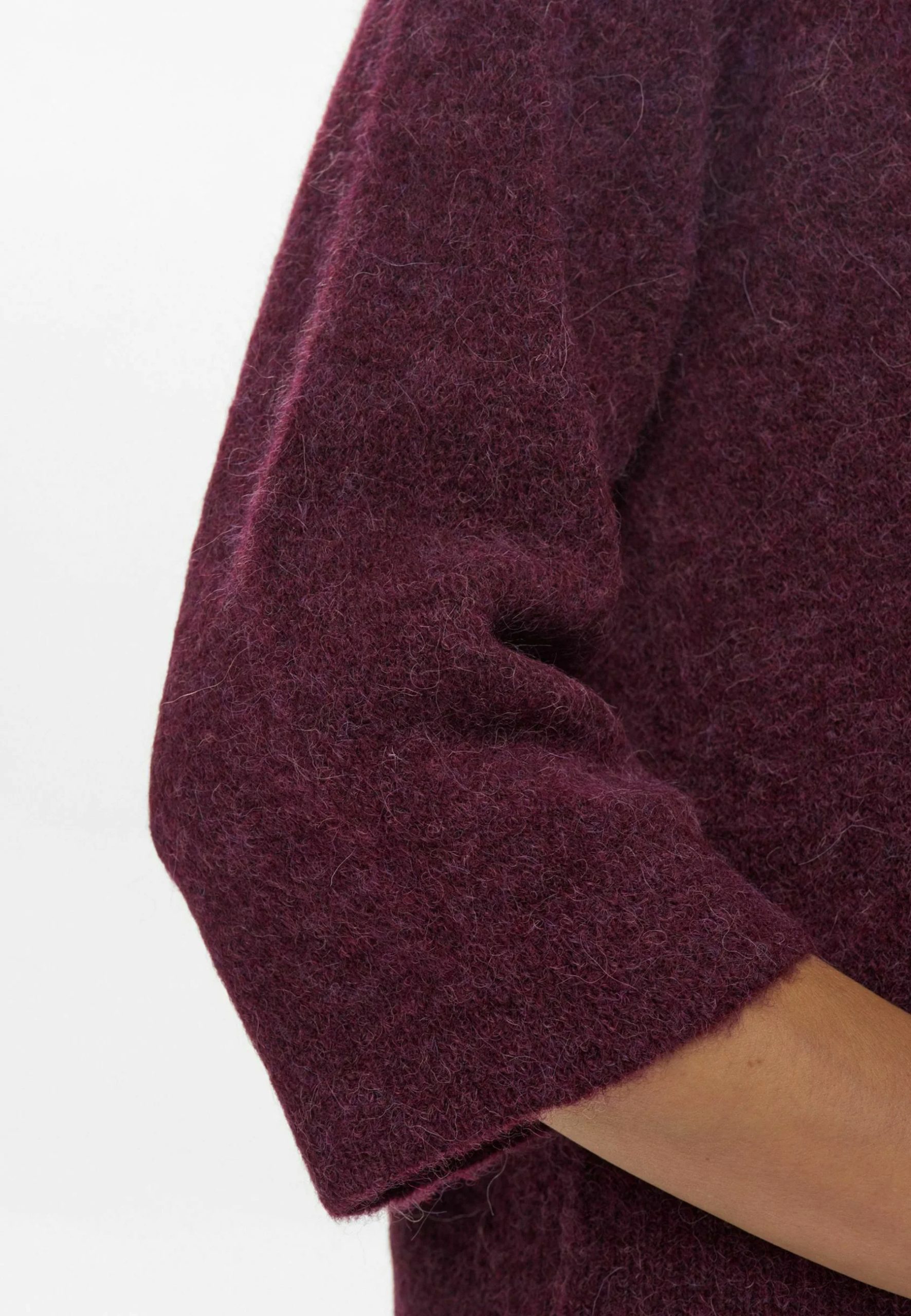 Jersey de la firma danesa NUMPH luce un diseño contemporáneo en un delicado tejido burdeos. Su silueta holgada y cuadrada presenta mangas tres cuartos que ofrecen proporciones modernas, mientras que un intrincado detalle festoneado enmarca el escote con una sofisticación discreta.
