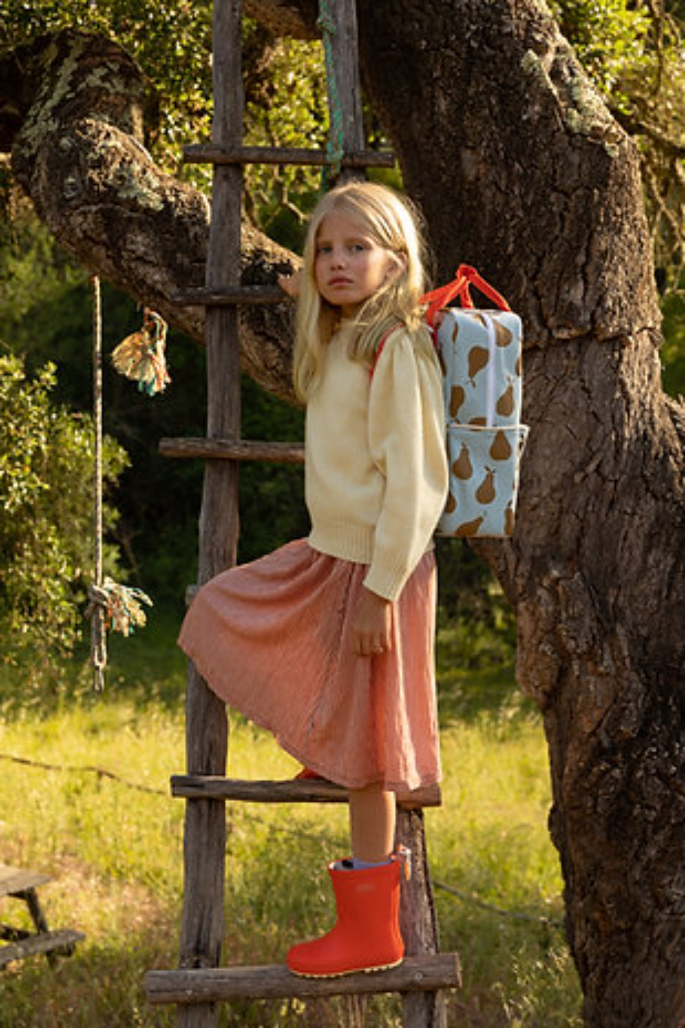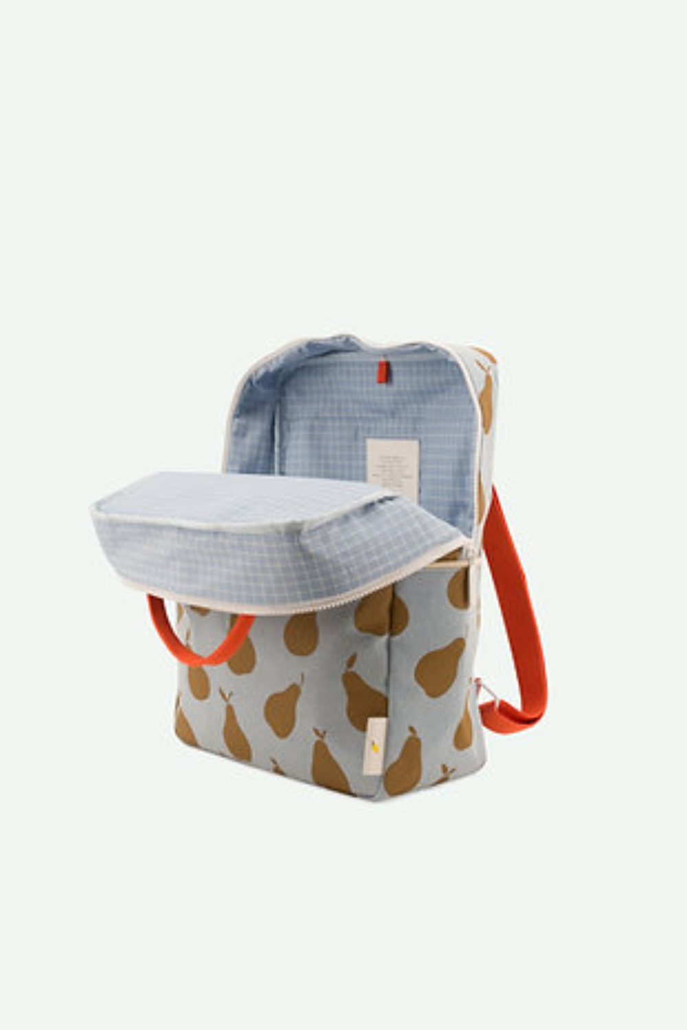 Esta mochila de edición especial de Sticky Lemon está hecha de tela vaquera con peras por todas partes. En la parte delantera tiene un bolsillo extra. El forro es impermeable. Las cremalleras son de YKK y las asas para los hombros son ajustables. En el interior encontrarás un portabotellas elástico y un bolsillo en toda la parte trasera que se cierra con velcro. En la etiqueta identificativa puedes escribir tu nombre y tus datos de contacto. El interior tiene un estampado de cuadros en niebla matinal.