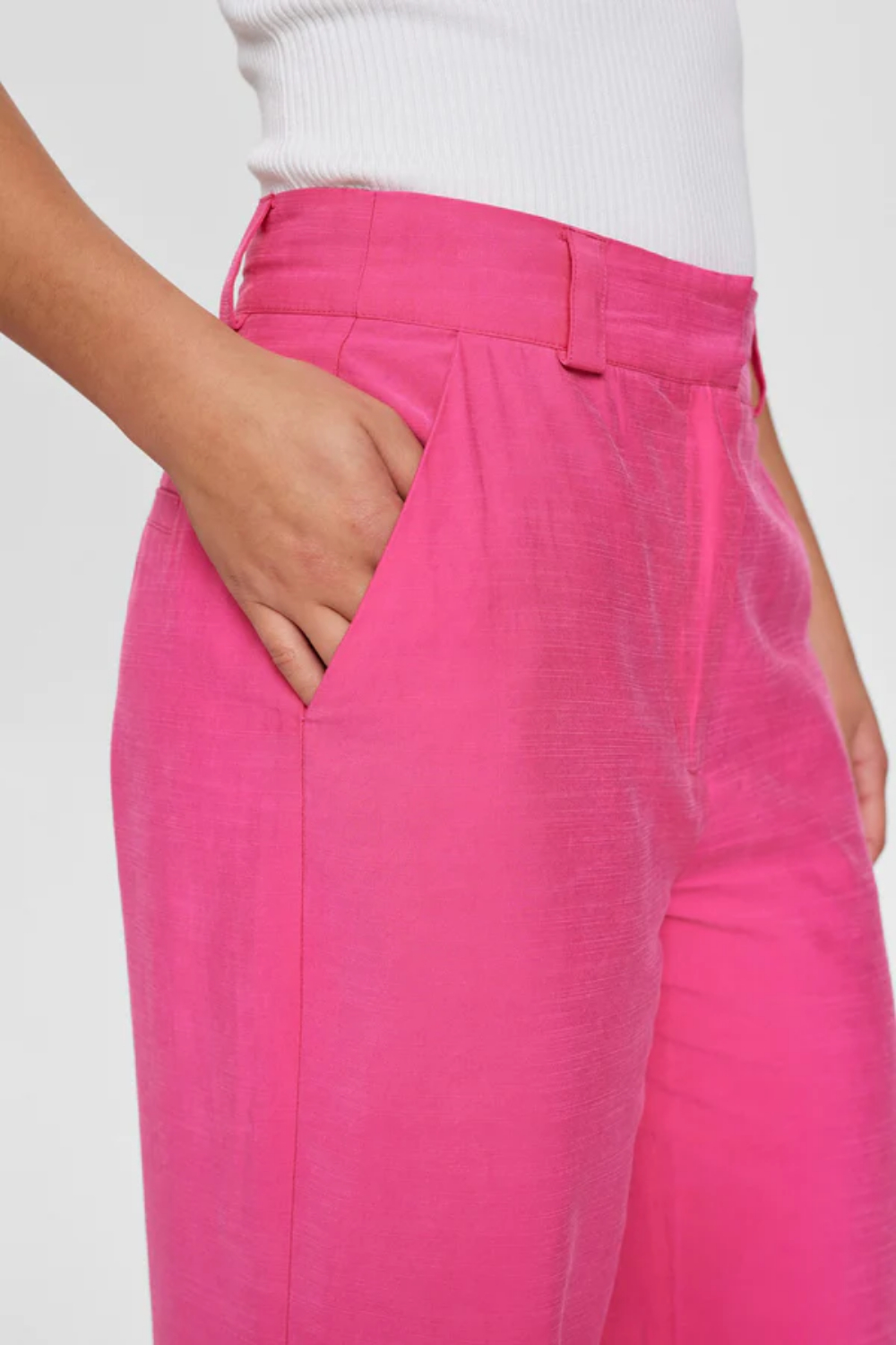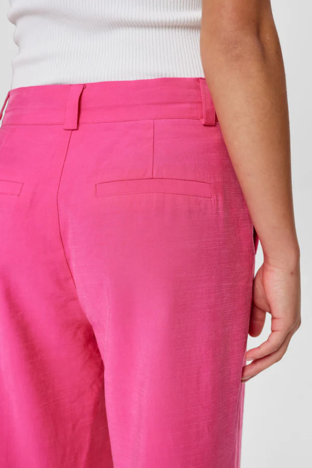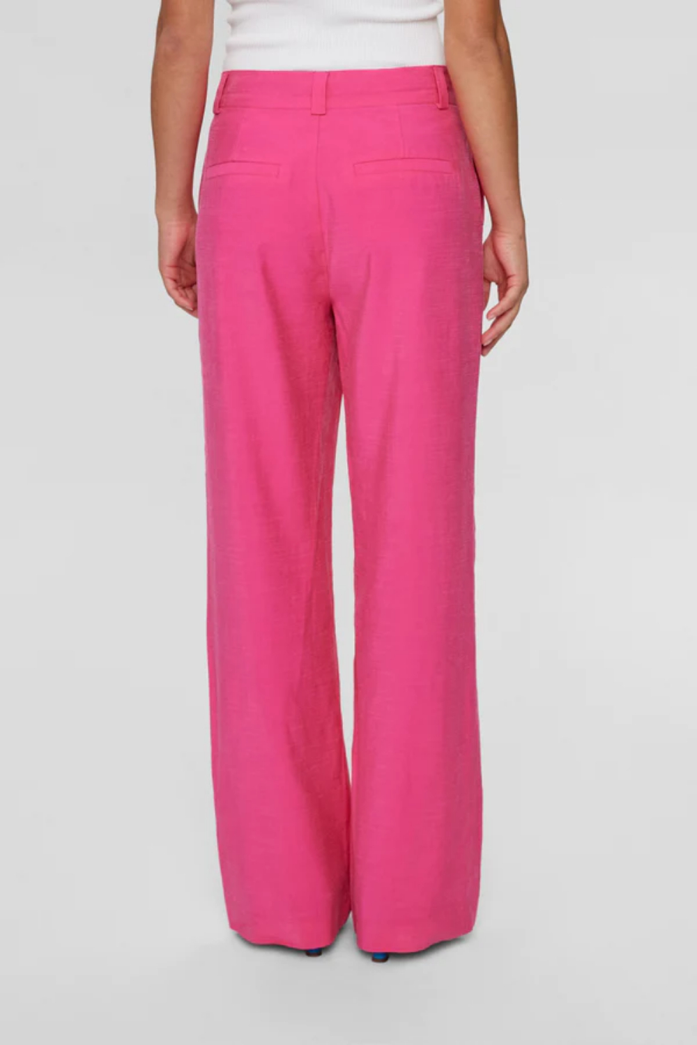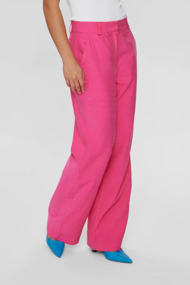Pantalón de la firma danesa Nümph de corte recto con pernera ancha en color rosa.