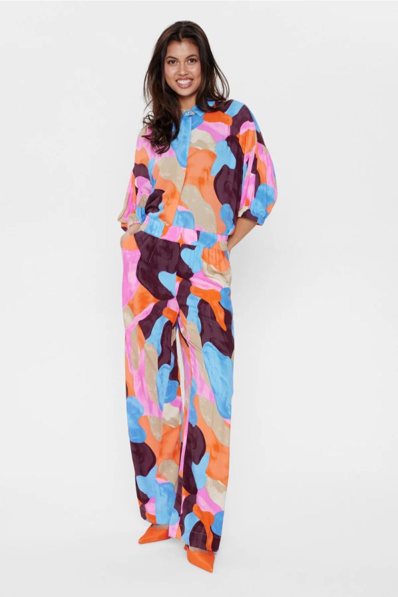 Pantalón largo de estilo culotte de la firma Nümph con cintura elástica y de corte amplio con estampado multicolor. Combínalo con la camisa NUPI para lucir el look completo.