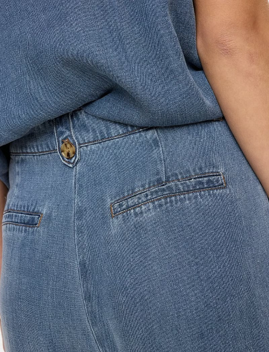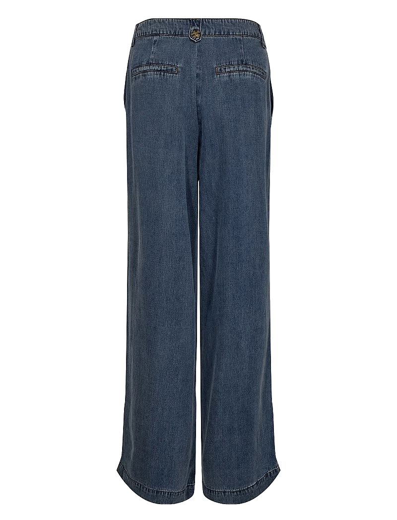 El denim de pierna ancha crea una silueta relajada en estos pantalones. El diseño presenta una cómoda cintura alta y sutiles pliegues que estilizan la figura.