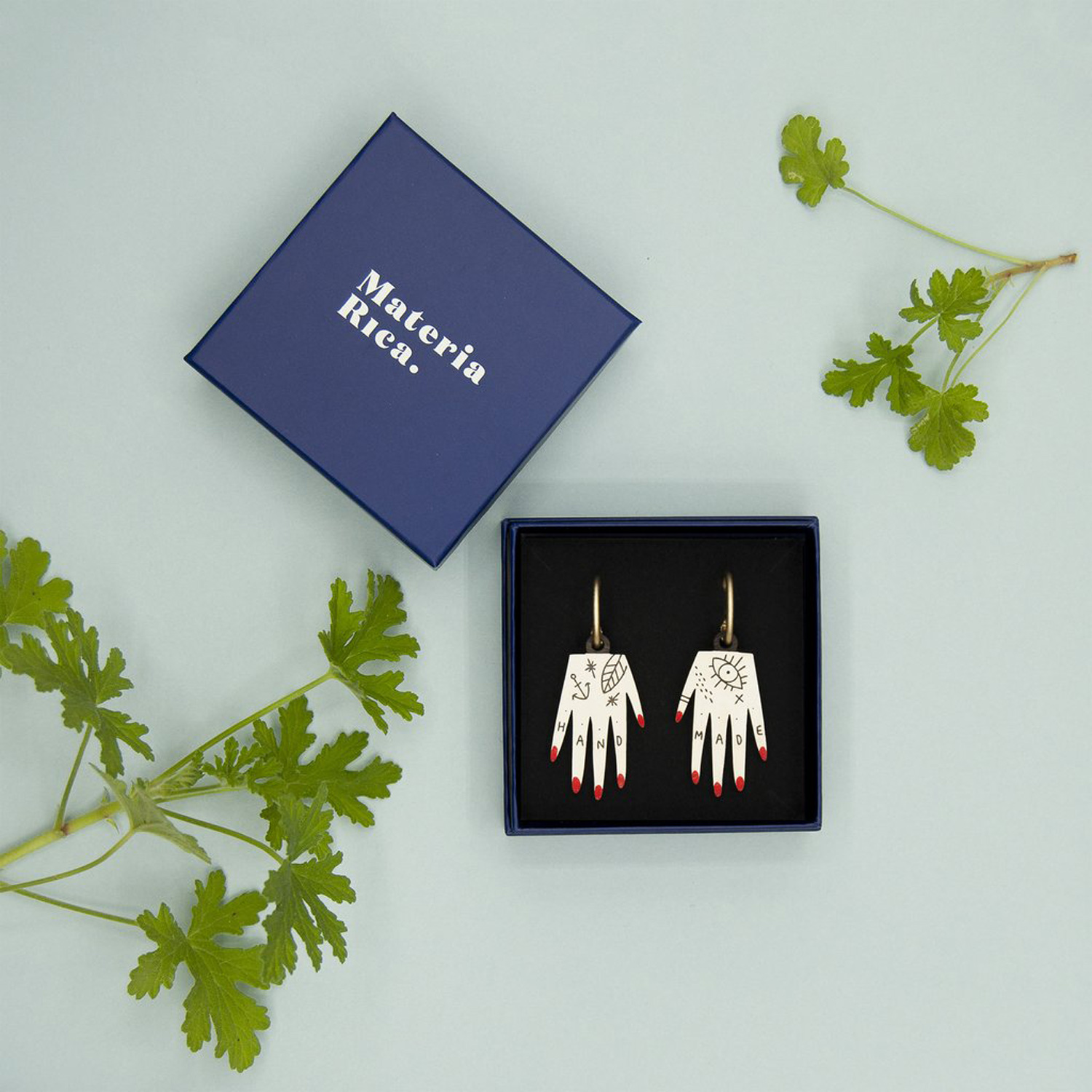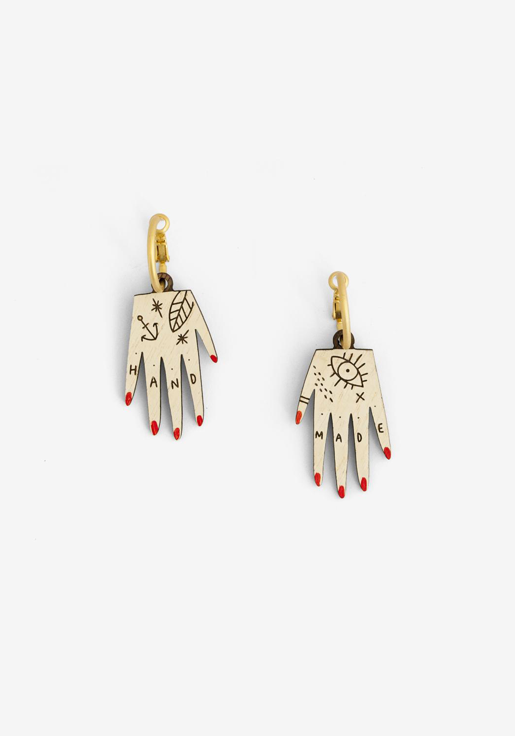 Los pendientes Hand Earrings son el complemento ideal para cualquiera de tus looks, para ti, que querrías ilustración, tatuajes y arte hecho a mano, a todas horas.