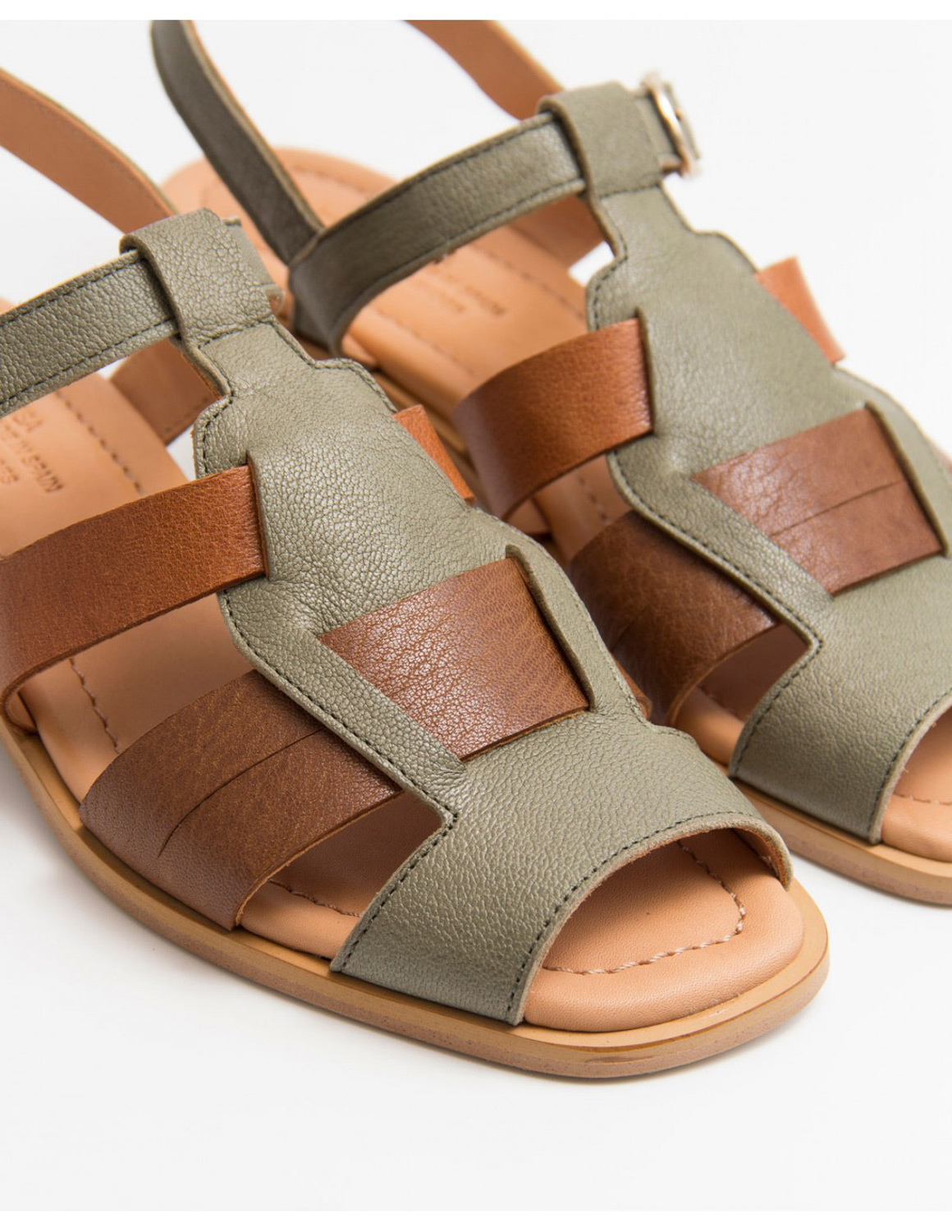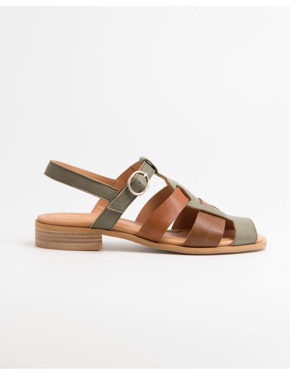 Amura es una sandalia estilo cangrejera, con cortes en combinación de colores, se ajusta al pie con una hebilla. Los cortes son de piel ovina y el forro en piel vacuna natural. La planta es acolchada con foam y forrada de piel para dejar transpirar mejor tu pie. Suela de goma antideslizante. La altura total es de 3 cm.
