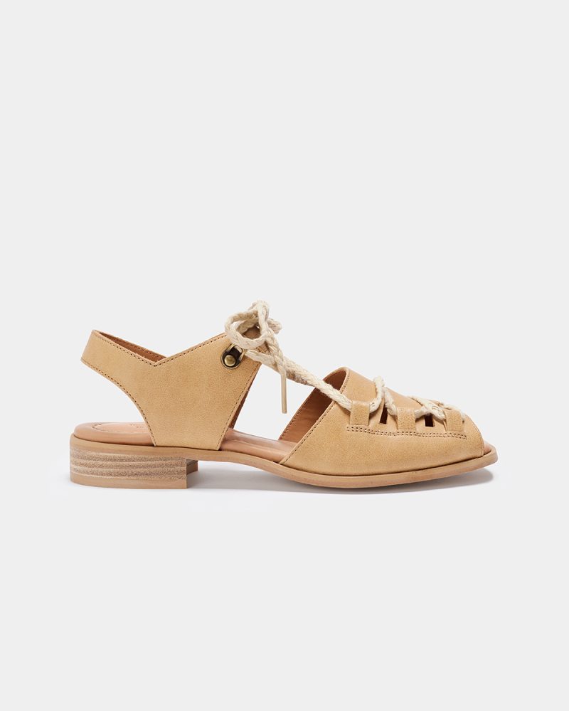 Lava es una sandalia baja, la pala y la trasera con en piel vacuno. Se sujeta al empeine con una cinta elástica que aporta mayor comodidad y cordones de polyester. El forro es de piel vacuno. La planta es acolchada, forrada de piel natural para dejar transpirar mejor tu pie. La altura total del tacón es de 2,5 cm.