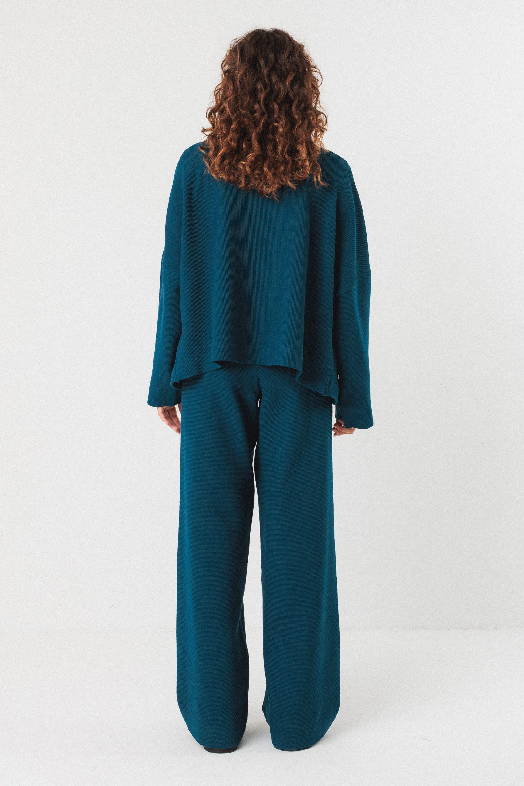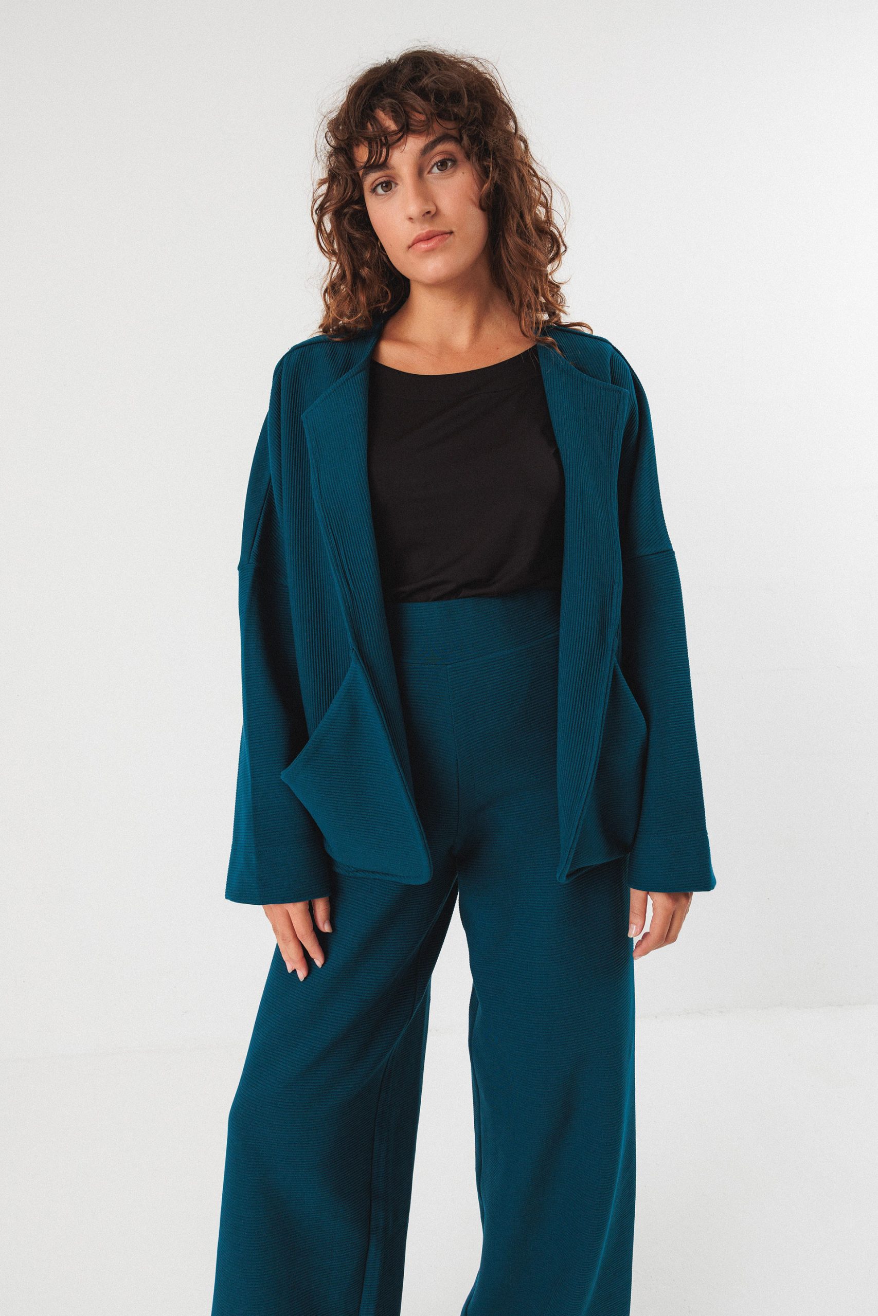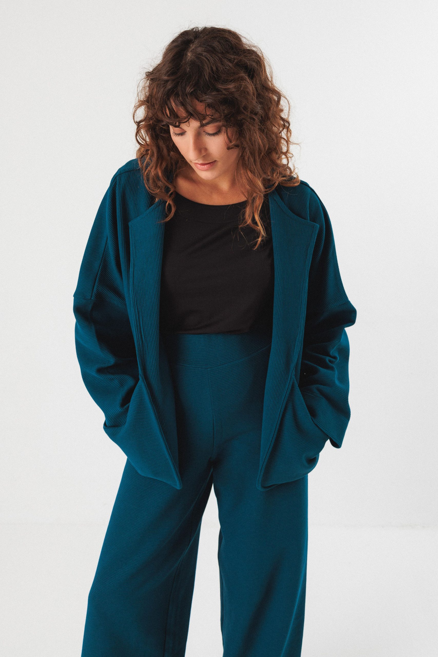 Cárdigan amplio de mangas kimono con bolsillos delanteros, hecho de algodón orgánico con certificado GOTS.