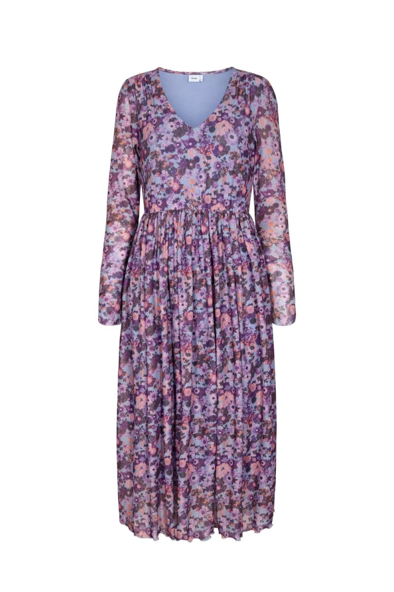 Vestido midi de la firma Nümph de corte amplio y con vuelo, con mangas ceñidas y con transparencias y cuello en V. Un indispensable de esta marca que todos los años se renueva con diferentes estampados. Sin duda una prenda estrella que te servirá para todo tipo de ocasiones.